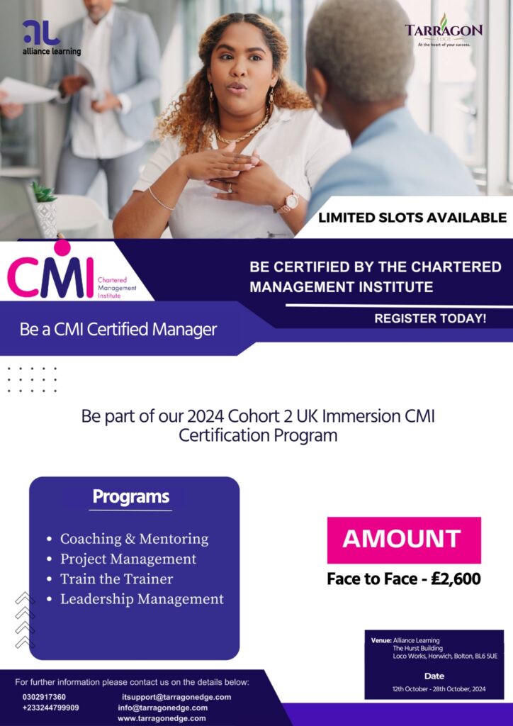 CMI CERTIFICATION PROGRAM Full Name Email Address Phone Do you require a VISA? YesNo Amount Select£2,100 - Virtual Classroom£2,600 - Face to Face Payment Method Credit CardDirect Bank Transfer Pay Online Click here to pay online Payment Options MTN MoMo (0247137713)First Atlantic Bank East Legon ( 0765972751029 GHS / 0765971112035 USD )BANK OF AMERICA (3850 3081 6604) Note: Proceed to payment manually to any of the accounts listed above. I Agree To All Terms & Conditions! Δ Page 1Page 2Page 3Page 4